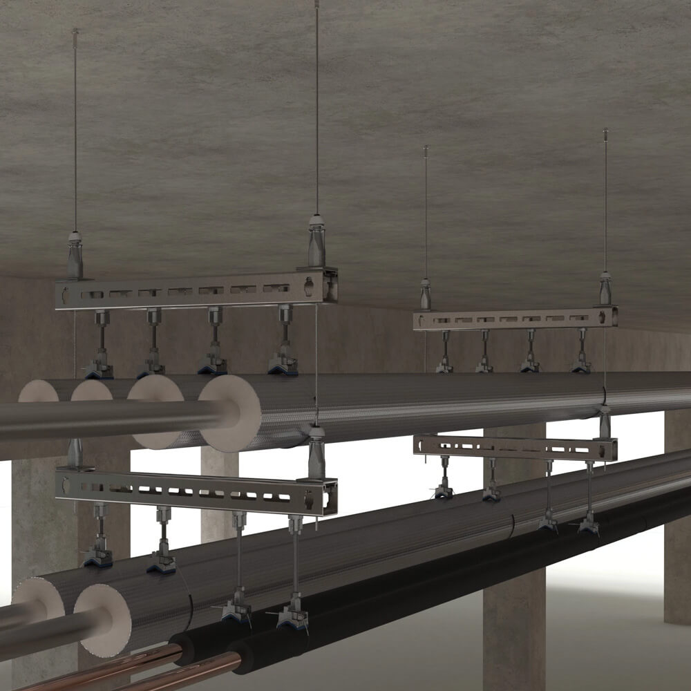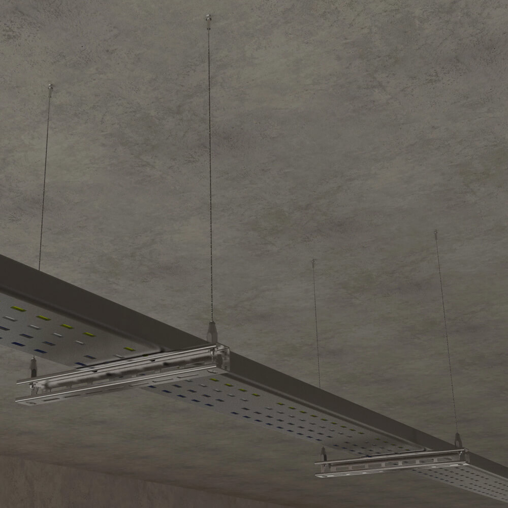 • Versatile – can be bolted directly to soffit or wall, or suspended from the soffit using threaded rod or Gripple Hanger e.g. Trapeze No. 2